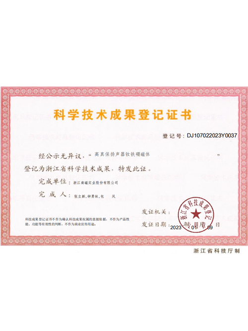 Registration Certificate of Scientific and Technological Achievements